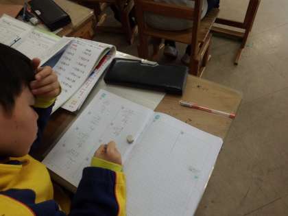 かけ算やわり算の筆算が正確にできることをめざして復習しています。