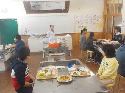 出来上がったオムレツと一緒に給食をお弁当箱に詰めました。お弁当箱に入れると一層美味しそうに見えて,早く食べたくなりました。