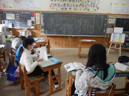 国語の学習では説明文に取り組んでいます。文の構成をつかんで,筆者の意見や考えを読み解いていきます。五年生の学習もまとめの時期が近づき,大切な部分をしっかり読み取る力がついてきたようです。