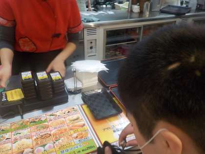 作品を鑑賞した後は,カナート洛北のフードコートで昼食をとりました。自分でメニューをみて注文し,商品を受け取り,代金を支払っておつりをもらうことができました。