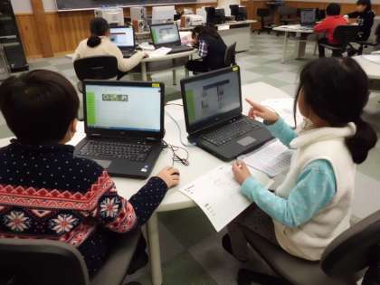 コンピュータを使って昔の道具調べをしました。本には載っていない道具も発見していました。