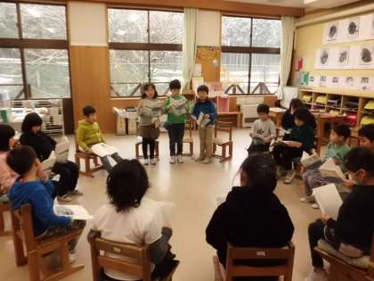 読みたいところを選んで,音読発表会をしました。合わせて読んだり一人で読んだり動きをつけたり,それぞれ工夫して発表していました。