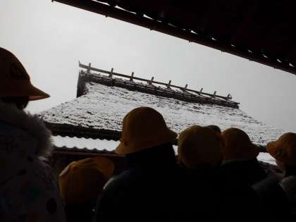 地域の方のおうちに行かせてもらい,茅葺の屋根や昔ながらの部屋の中を見学させてもらいました。入る時,それぞれが声かけをして,くつを並べていました。