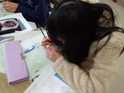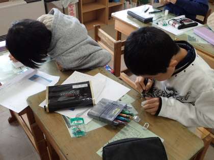 2月14日,書写の作品に押すはんこを手作りしました。自分でデザインを考え,けしゴムに彫っていきます。