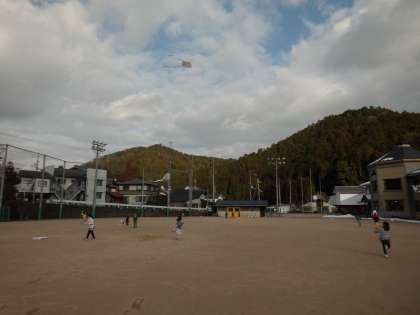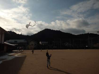 作ったたこをあげました。風が少し吹いていたので,勢いよく高くあがっていきました。