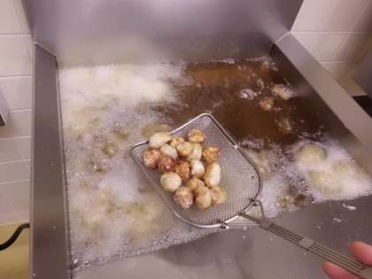 米粉でまぶして油で揚げていました。