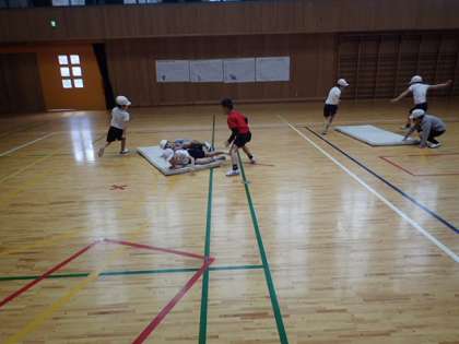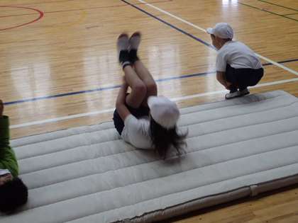 マット運動にもだいぶ慣れてきました。体ならしも自分のチャレンジしたい技に合わせて行う姿も見られるようになりました。