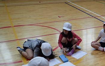 授業をした後,活動のふりかえりをしています。「側転ができるようになりたい」という児童がたくさん出てきました。