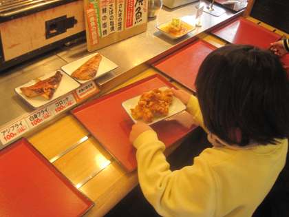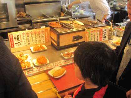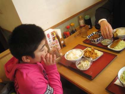 トロッコ列車から降りて,亀岡食堂で昼食を取りました。自分の食べたいおかずを選び,代金を支払う学習に取り組みました。