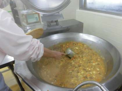 給食のカレーはルーから手作りでいろいろなスパイスや調味料が入っています。