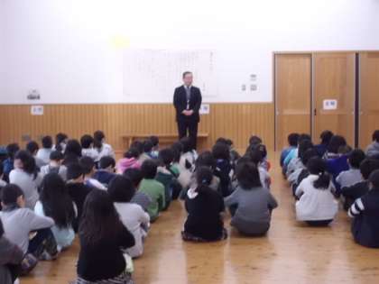 月曜日,3月はじめの朝会がありました。校長先生が前で話されるのは,次は卒業式,終了式の時だそうです。1年生も終わりに近づいています。