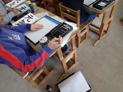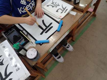 今年度,最後の習字の学習をしました。「元気」という字を書きました。字の大きさやバランスなど,とても整った字を書ける子がたくさんいて一年間の上達に感心しました。