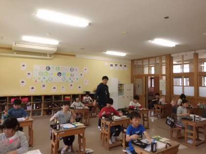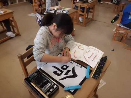 4年生になって初めて,毛筆の学習をしました。書き順を丁寧に確認して書きました。