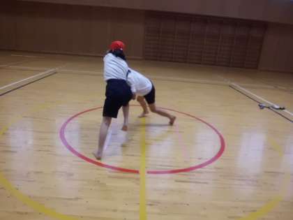 体育の学習で「すもうあそび」を行いました。安全に気をつけながらも,白熱した試合でした。