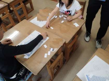 算数では,1から10までの数について学習しています。今日は,2人組になって自分の出したカードと相手の出したカードの数の大きさを比べました。とても意欲的に活動していました。楽しみながら,数の基礎を学習していきたいと思います。