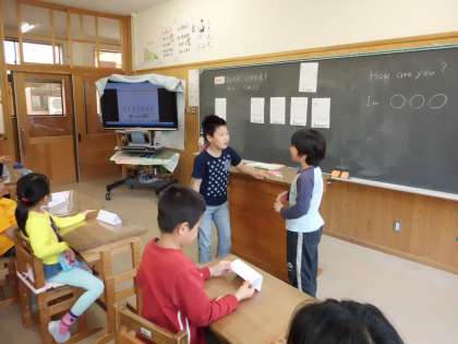 今日は,英語で自己紹介をしたあと,気持ちや様子を伝える表現を学習しました。
