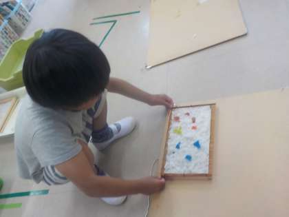 生活単元学習で「紙すき」に取り組みました。牛乳パックのフィルムをはがし,細かくちぎり,ミキサーにかけてパルプを作りました。そのパルプを水槽に入れ,紙すきの道具を使って紙をすきました。1つ1つの作業に丁寧に取り組み,素敵な紙を漉くことができました。出来上がりが楽しみです。