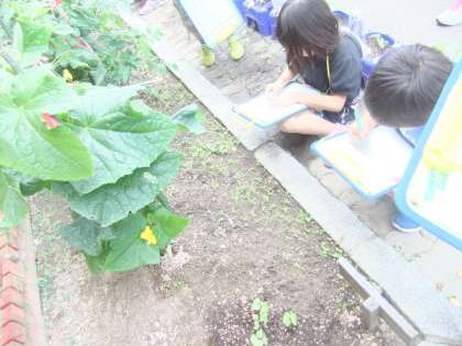 花が咲き,実が出来たことに子どもたちは大喜びです!