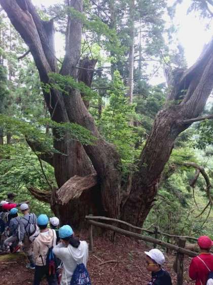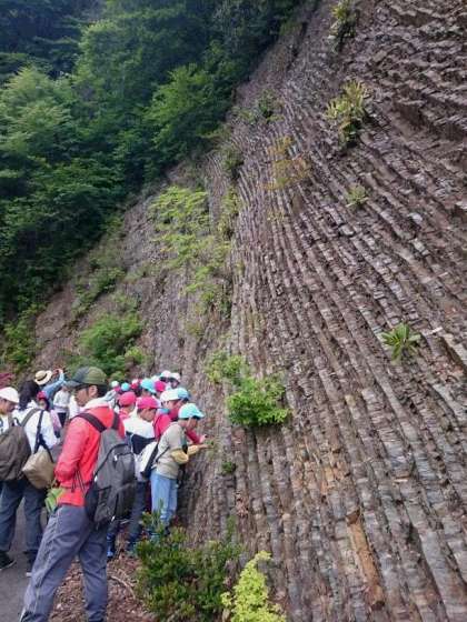 片波川源流伏条台杉に行きました。自然の雄大さ,杉の木の生命力を感じました。おにぎりのお弁当を食べてから,層状チャートを見学しました。海でできたものが,なぜ山にあるのか不思議でした。