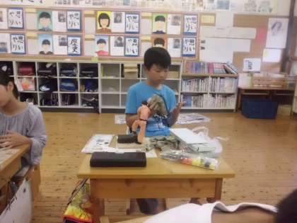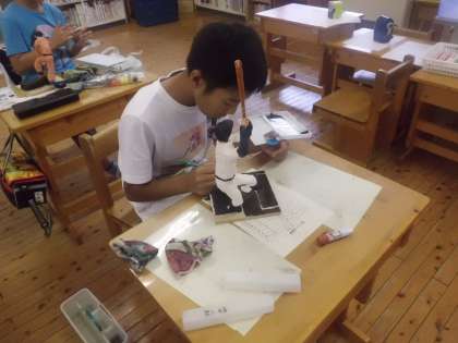 中学校の先生から指導していただいている図画工作ですが,『12年後の私』の作品が完成しました。将来の自分の姿を思い浮かべながら,色遣いや小道具の置き方に工夫をしました。