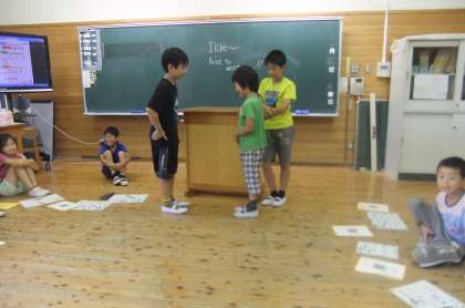 外国語活動の授業で,「Ilike〜」の使い方の学習をしました。