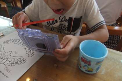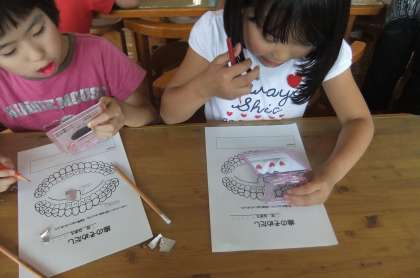 昼休みに,歯の歯垢染出しをしました。