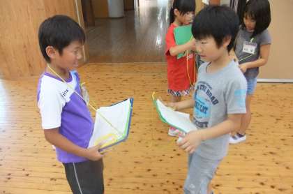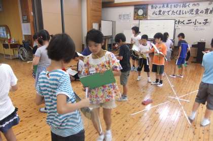 第一小学校と第三小学校の友達とゲームを通して交流し,