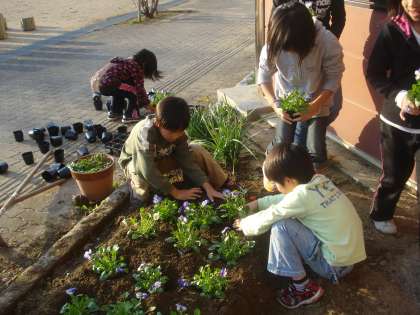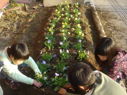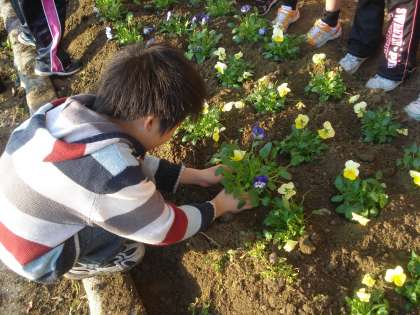 3年生が学級園にパンジーを植えました!