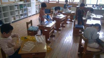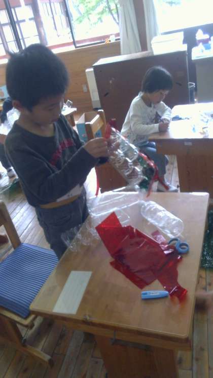 図画工作科「ひかりのプレゼント」の学習をしました。家で集めてもってきた容器に,色のついたセロハンを入れたり,マジックで色をぬったりなどして作っていきました。完成した作品を光にあてると,ひかりのプレゼントが届くのですが,太陽の光が少なかったので,また晴れた日に作品を楽しみたいと思います。