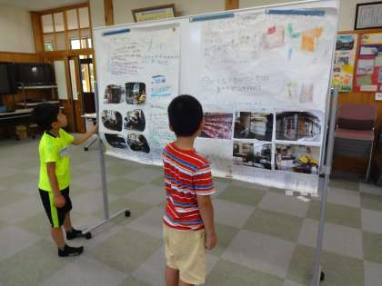 生活科の学習で校区探検をもとに作った地図を交流しました。ランキング形式で第4位から第1位までを発表をしたのですが,おすすめすることによって,さらに自分の学校の周りが好きになっている様子でした。また,他の小学校の発表を聞いて,自分の学校の周り以外にも興味をもったようです。