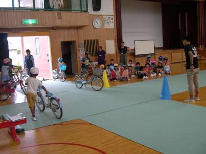 子どもたちは交差点の曲がり方に戸惑いながらも,教えていただいたことを守ってしっかりと乗ることができました。