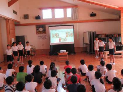 今日は5年生の発表でした。5年生は長期宿泊学習の思い出を発表しました。いろいろな活動の紹介をした後,この学習で得たことを一人一人発表しました。