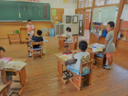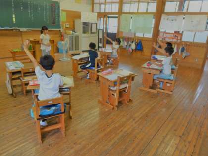 国語の学習で「ミリーのすてきなぼうし」を使い,お話クイズを作って,みんなで出し合いました。それぞれお気に入りの文などを間違いのある文に書きかえて,クイズを作りました。同じ文を選んでいても問題は違っていて,クイズを出すこともクイズに答えることも楽しんでいる様子でした。
