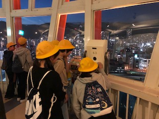おはようございます。子ども達は全員元気に2日目の朝を迎えました。天気は快晴。今日は暑くなりそうです。写真は昨夜のポートタワーで神戸の夜景を楽しんでいる時の様子です。