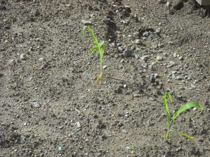 5月14日 連休も終わり,各学年学習もどんどん進み出しました。それに伴い,学級園もいろいろな作物の種や苗や植えられ,賑やかになりました。2年生は,トウモロコシが植えてありました。収穫時にはしっかり干してポップコーンにするそうです。4年生はツルレイシ。太いツルレイシと長いツルレイシが穫れる2種類が植えてありました。6年生は,4月早々ジャガイモが植えてありました。家庭科の調理実習などにも使えるそうです。そのほかにもいろいろ学年の教材にしたがって栽培計画が立てられています。