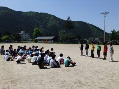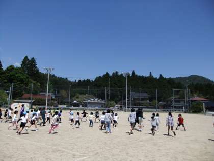 5月18日(水)中間休みに全校遊び(川おに遊び)をしました。五月晴れの下、みんな気持ち良さそうに、楽しく遊んでいました。
