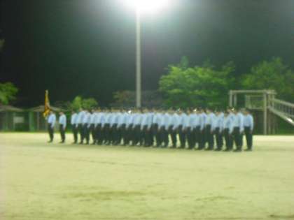5月18日 先日から地域の消防団の方が京都市のポンプ操法の大会に向けて頑張っておられました。今夜も50名余りの消防団の方が勇ましい号令と共に取り組んでおられました。中には保護者の方も数人おられました。子ども達にも見せてやりたいほどの力強い訓練でした。