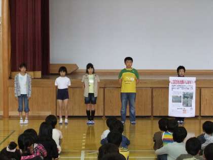 今日の朝会は、子どもたちの各委員会活動の紹介でした。この一年間の委員会での取組みやみんなにお願いしたいことなどを発表しました。各委員会の活動の意気込みが感じられました。