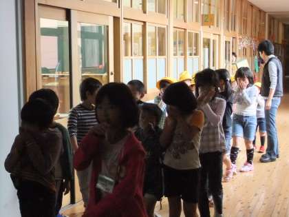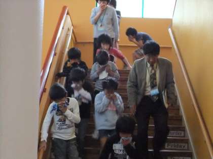 5月24日 今年度、第一回目の最初の避難訓練を実施しました。今回は,「火災」を想定の避難訓練でした。(1)火災発生時の基本的行動がわかる(2)避難経路を知る(3)迅速な行動がとれる をねらいに実施しました。