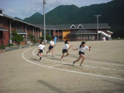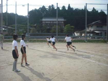6月6日 来る6月末にある陸上大会に向けて,6年生がリレーの練習に汗をかいています。放課後,バトンを手にコースを使って,バトン渡しの練習をしています。まわりの低学年も応援していました。