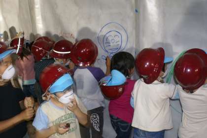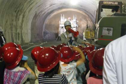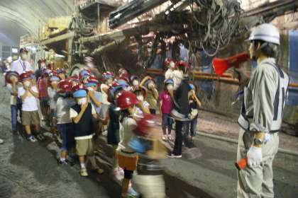 栗尾トンネル新設工事現場の見学に行ってきました。大きな機械,がんばって働いておられる人たちの姿に感動しました。トンネルに記念の絵やメッセージを残してきました。