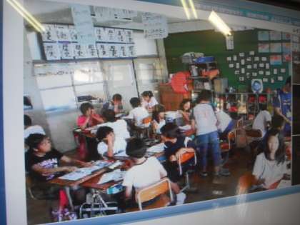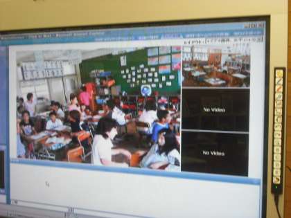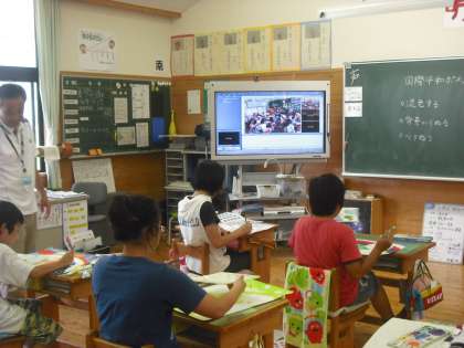 7月5日 先日の日清カップの陸上大会に参加した子ども達が親しくなった川岡東小の子どもたちとテレビで交流をしました。本校の6年生の教室の電子黒板の画面に川岡東小の6年生の授業風景が映し出されました。向こうでは,本校の6年生の画面が映っています。マイクを通しての交流もしました。今後も続けていきたいと思います。よろしく!