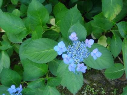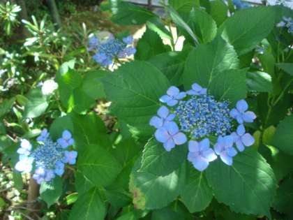 7月8日 例年より少し遅く紫陽花が綺麗に色づいてきました。種類は,萼紫陽花(ガクアジサイ)。紫がとっても美しい花です。