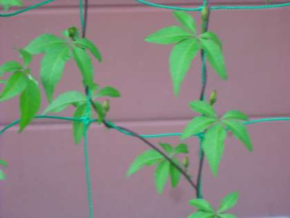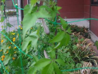 7月8日 夕方,緑のカーテンに水をやっているとアサガオのツルに花のつぼみが出来ていました。もうすぐ来週にも開花しそうです。