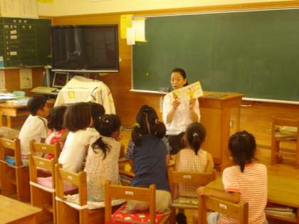 7月12日 今日の地域ボランティアの方の読み聞かせは1年生でした。京北第二小では6年前からお世話になっています。毎月1回各学年が5〜6名の方にお世話になっています。毎回子ども達の喜びそうな本を選んで来ていただいています。