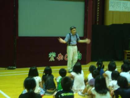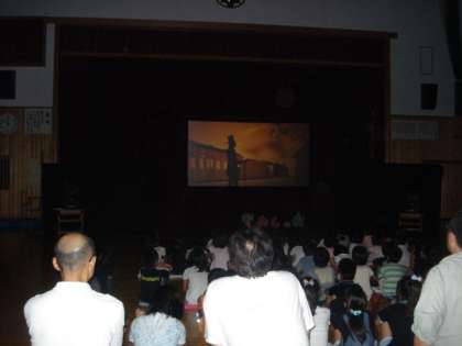 7月12日 今日はPTA主催の親子文化鑑賞がありました。今回は,東京から影絵劇団「かしの樹」に来ていただきました。京北第二小では,人形劇・影絵・劇と3つの内容を3年に1回鑑賞できるようにしています。今年度は影絵で「走れ,メロス」と「虔十公園林」を上演していただきました。中間に影絵マジックをしていただき,子ども達も大喜びでした。保護者の方も来ていただき,有意義な親子文化鑑賞になりました。