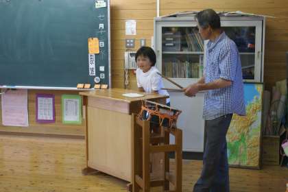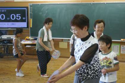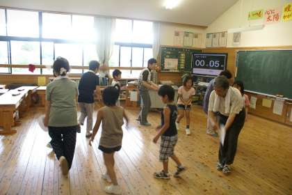 4年生が地域の方々に丹波おんどを教えてもらっています。