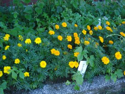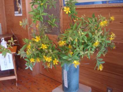 7月13日 本校は,自然が豊富なので校内や近隣の畦に四季折々の華が咲いています。その華を切って来ては玄関の花瓶や植木鉢に植え替え飾っています。今は,学校園にいっぱい咲いているマリーゴールド・紫陽花と美容(びよう)やなぎが来客者を迎えています。年間通して玄関には,季節を感じる華を飾ることを心がけています。