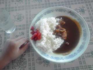 海を見ながら最後の食事はカレーライスです。