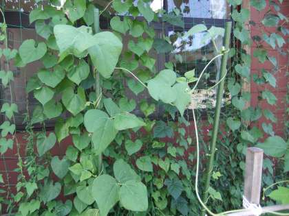 8月4日 5年生の花壇には,発芽で実験したインゲン豆が育っています。もうすぐ実を付けます。